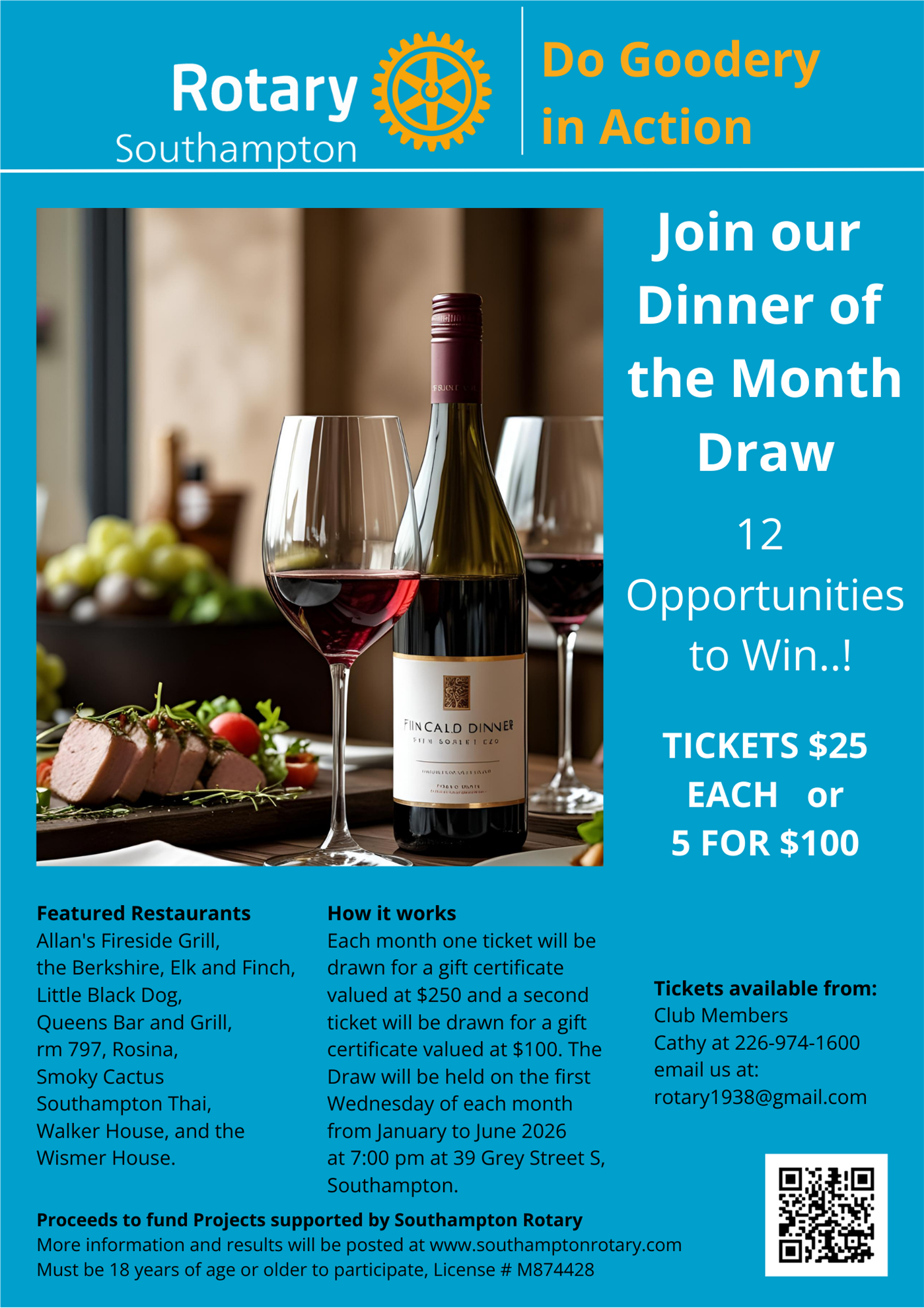 Coming soon......Tickets at $25 each, or 5 for $100 from any Southampton Rotarian or by contacting Cathy Janveau 226 974 1600